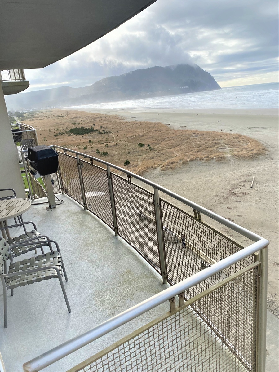 These ocean front condos offer spectacular views of the coastline from Tillamook Head to Washington State. They are approximately 1300 sq. ft. and can sleep 8 guests. The units feature a complete kitchen, living and dining room, fireplace, balcony and jetted tub. They are furnished with a king, queen, two twins, and a queen Murphy bed in the living area.
