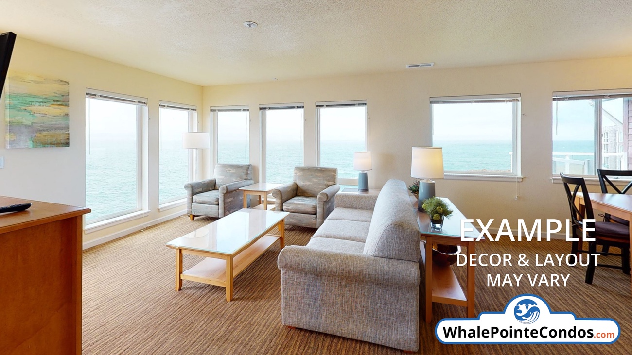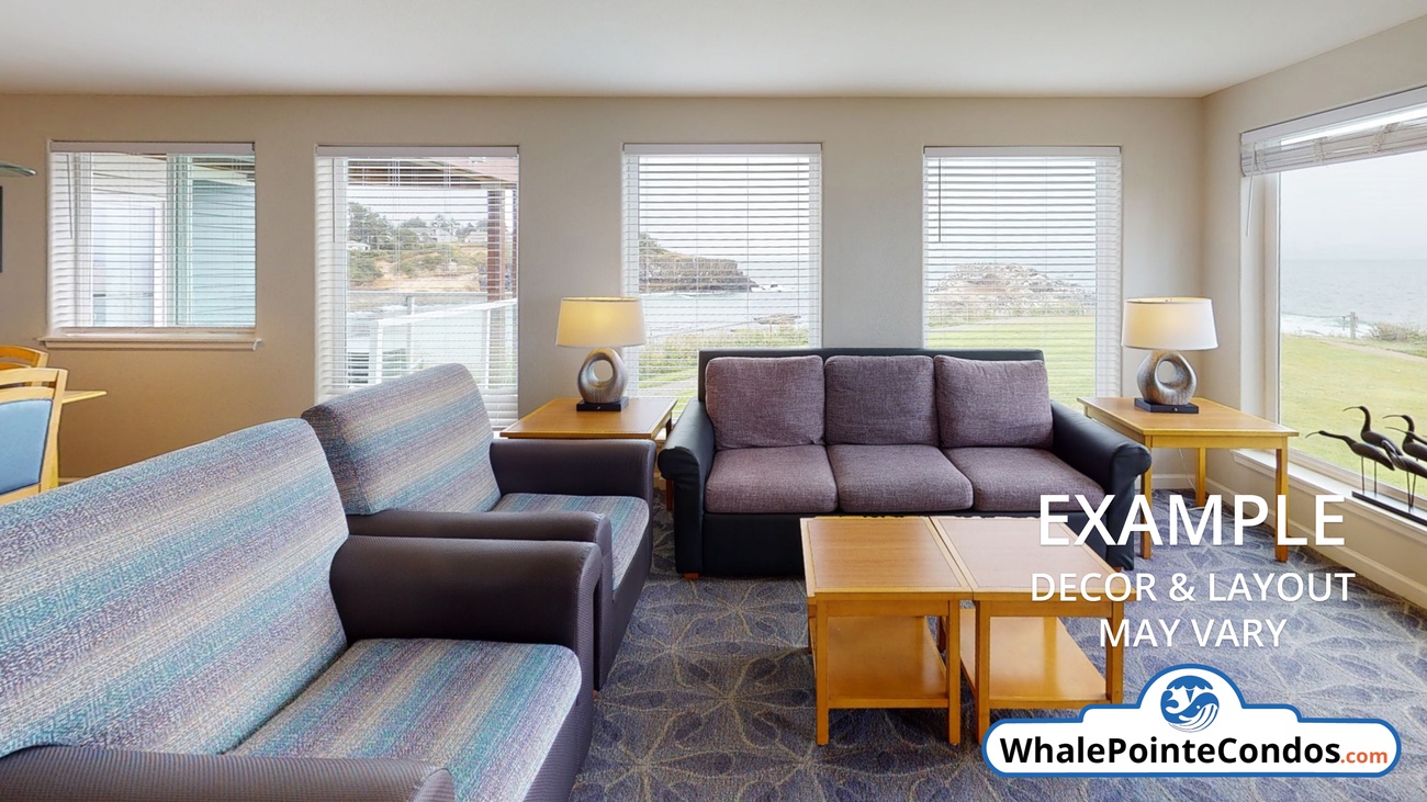 These deluxe three-bedroom units are approximately 1350 square feet and offer spectacular ocean views. The units are limited to eight guests and feature a complete kitchen, living and dining room, fireplace, balcony or patio, and jetted tub. Each unit is furnished with a king bed, a second king bed, two twins, and a queen sofa bed in the living room. There is no better spot on the Oregon Coast to see whales out your front window than Whale Pointe at Depoe Bay Vacation Rental Condos. Enjoy indoor and outdoor Heated Pools, Gyms, the Tennis Court, and Spas.